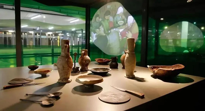 項(xiàng)目舊址在1940年的一次戰(zhàn)爭中歷史建筑都被摧毀,Markthal市場再建設(shè)時(shí),地下考古團(tuán)隊(duì)發(fā)現(xiàn)了各種各樣的中世紀(jì)物品。為予以紀(jì)念,便以垂直展覽的形式在市場內(nèi)的自動扶梯上展示。