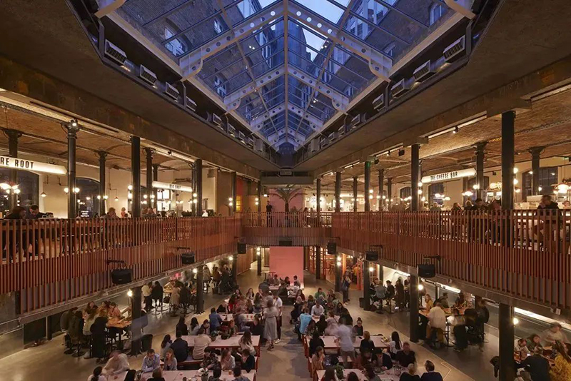 在曾經(jīng)用作儲存黃瓜和香蕉的Thomas Neal倉庫打造24h營業(yè)的Seven Dials美食市集。將整個(gè)市集劃分為倫敦專業(yè)生產(chǎn)商的室內(nèi)生產(chǎn)線的「黃瓜巷」和坐擁一系列著名街頭食品商鋪和餐廳的「香蕉倉庫」,給古老的倉庫賦予了新的生機(jī)。