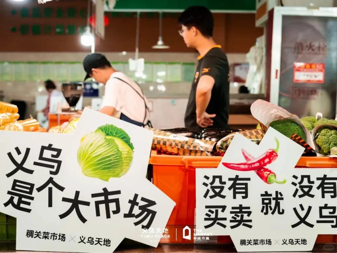 為預(yù)熱開業(yè),義烏天地攜手稠關(guān)菜市場,于7月初精心策劃了一場跨界聯(lián)動,將現(xiàn)代時尚與傳統(tǒng)市井完美融合。