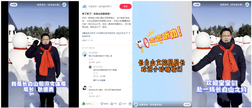 后有網(wǎng)友喊話(huà)“快讓長(zhǎng)白山跟一波熱度”,吉林文旅現(xiàn)場(chǎng)“搖人”,長(zhǎng)白山旅游文體局局長(zhǎng)隨即拍攝歡迎視頻,再次實(shí)戰(zhàn)“聽(tīng)勸式營(yíng)銷(xiāo)”。