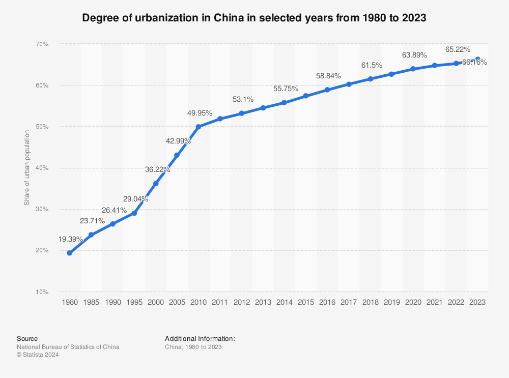 報(bào)告中顯示,2023年末,我國(guó)城鎮(zhèn)常住人口已經(jīng)達(dá)到了9.3億,城鎮(zhèn)化率66.16%,即,每三個(gè)中國(guó)人中,有兩個(gè)生活在城市里。此外,我國(guó)地級(jí)以上城市常住人口達(dá)到6.7億人,常住人口超過500萬(wàn)的城市有29個(gè)。