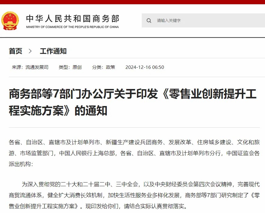 對實體商業(yè)而言,12月16日,商務部等七部門辦公廳聯(lián)合印發(fā)《零售業(yè)創(chuàng)新提升工程實施方案》(以下簡稱《方案》),旨在推動商業(yè)場景化改造、多元化業(yè)態(tài)融合創(chuàng)新、品質化產品和服務供給、數(shù)字化賦能、產業(yè)鏈協(xié)同降本增效。