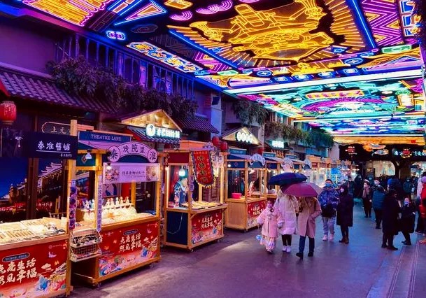 在建筑與空間設(shè)計(jì)方面,許多購物中心保留了當(dāng)?shù)氐臍v史建筑和文化元素,如倫敦的Coal Drops Yard購物中心保留了維多利亞時(shí)期的建筑風(fēng)格,維多利亞女王大廈(QVB)融合了羅馬風(fēng)格建筑,成為當(dāng)?shù)氐臍v史性旅游景點(diǎn)。在國內(nèi),成都遠(yuǎn)洋太古里則融入了川西民居特色,營造出獨(dú)特的購物體驗(yàn);天津西青大悅匯以“京杭大運(yùn)河文化”為主題,打造了食肆碼頭主題街區(qū)場景,重現(xiàn)了天津的歷史變遷;鄭州1948主題街則通過復(fù)原民國時(shí)期的火車站臺,營造出濃厚的市井文化氛圍。